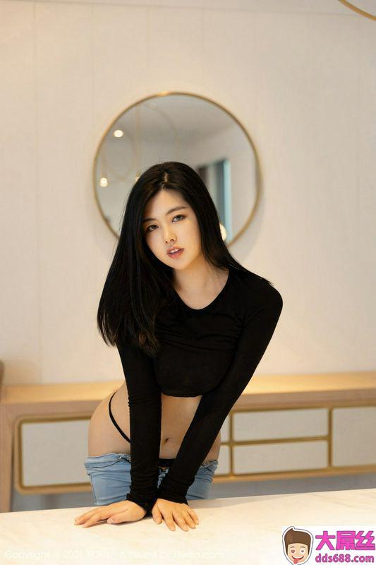 女神娜露Selena轻透黑色服饰配牛仔裤半脱露翘臀诱惑写真