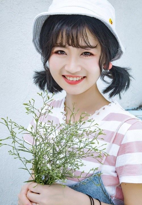 短发圆脸甜美笑容可爱萌妹活力写真图片