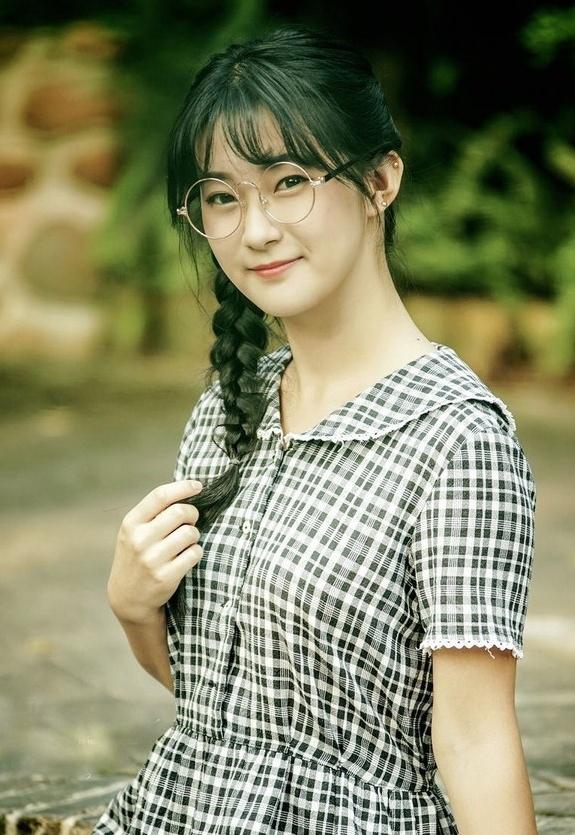 大学校园里带眼镜的女孩
